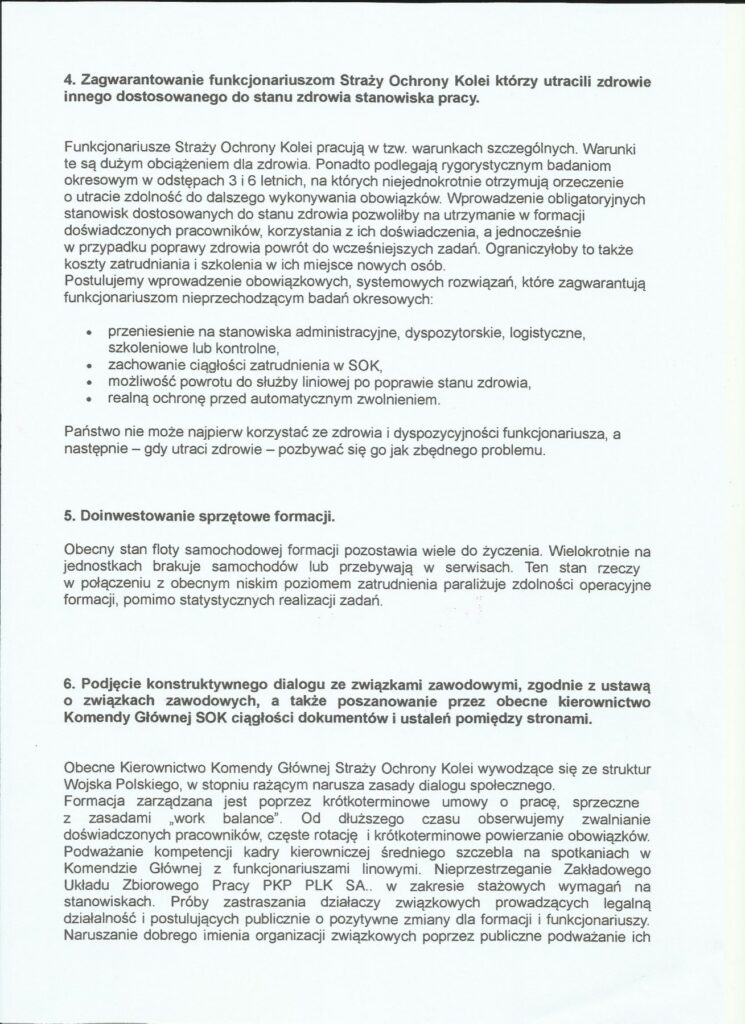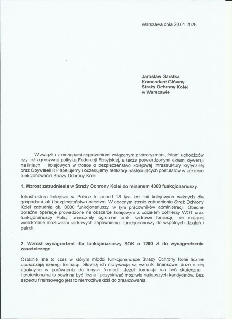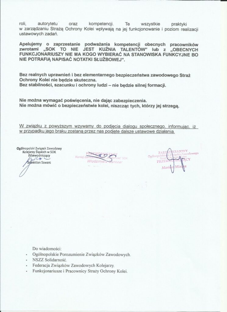 Wspólne pismo organizacji związkowych wzywające do dialogu społecznego w Straży Ochrony Kolei